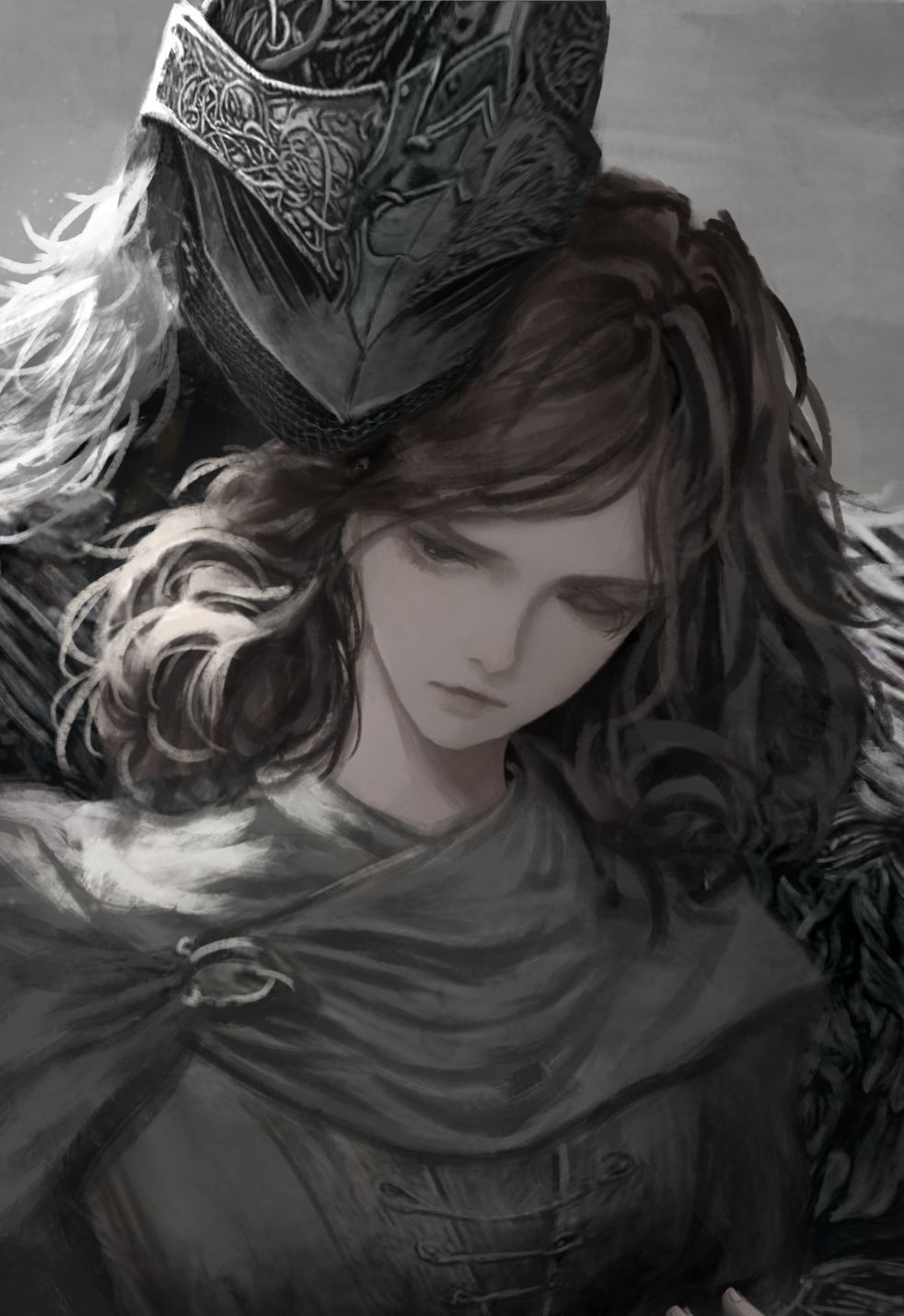“那我們離開這裏吧。”褪色者轉過身,眼神柔和又堅定地看着面前這個淚如雨下的女孩,溫柔地說:“離開交界地,去一個沒有人的地方,就我們兩個。”