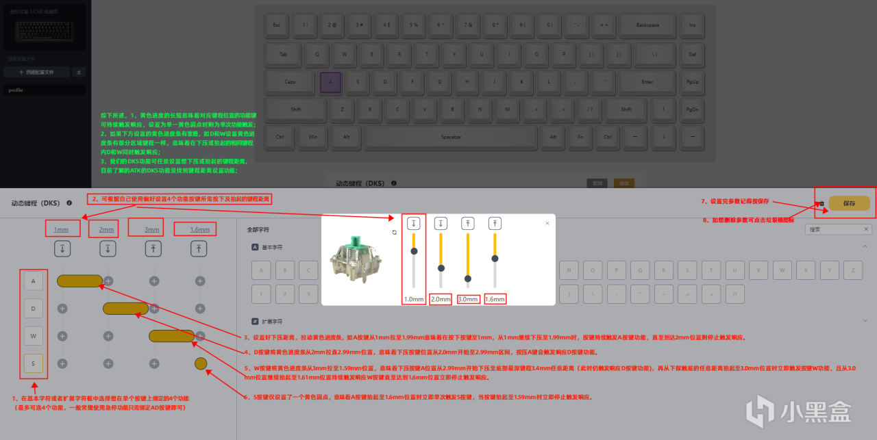 设置完成后上方键盘左上角红框处可看到对应键的触发行程0.1mm-Xmm(X以轴体最大行程为准,如磁皇轴为3.5mm)