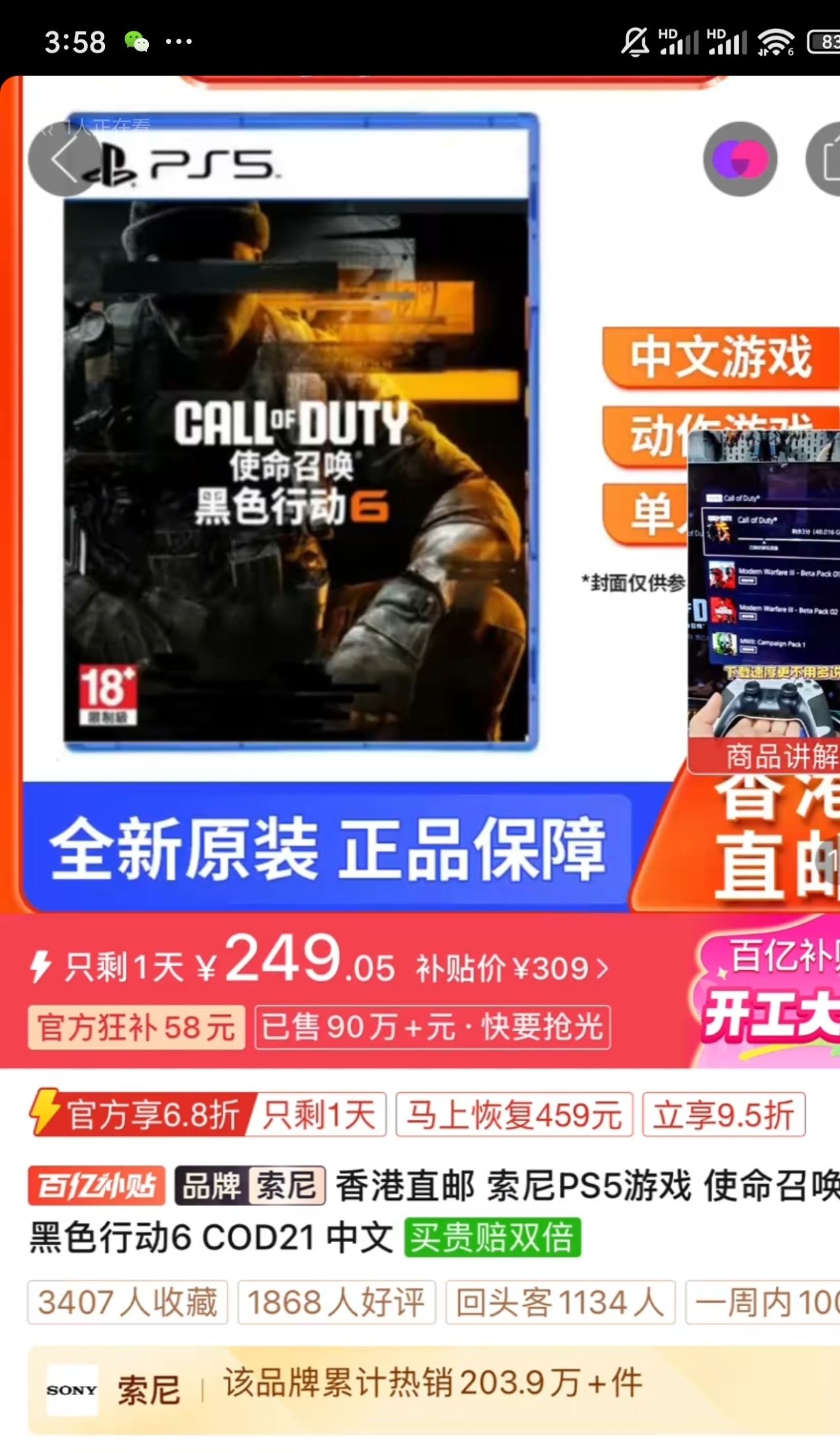 兩款cod今天都有好價,cod20全新ps5版本199,也算是近期新進百補,之前一直賣那個180的是ps4版本,最高幀數只有60,cod20目前是17-21這幾部裏多人體驗相對來說最好的一部,儘管運營期已經結束了,因爲有跨平臺完全不用擔心會匹配不到人,推薦有psn的朋友體驗,參考小黃魚普遍二手價格都在190左右這個全新價格還是可以的,如果有新價格我會通知,也可以先不買。