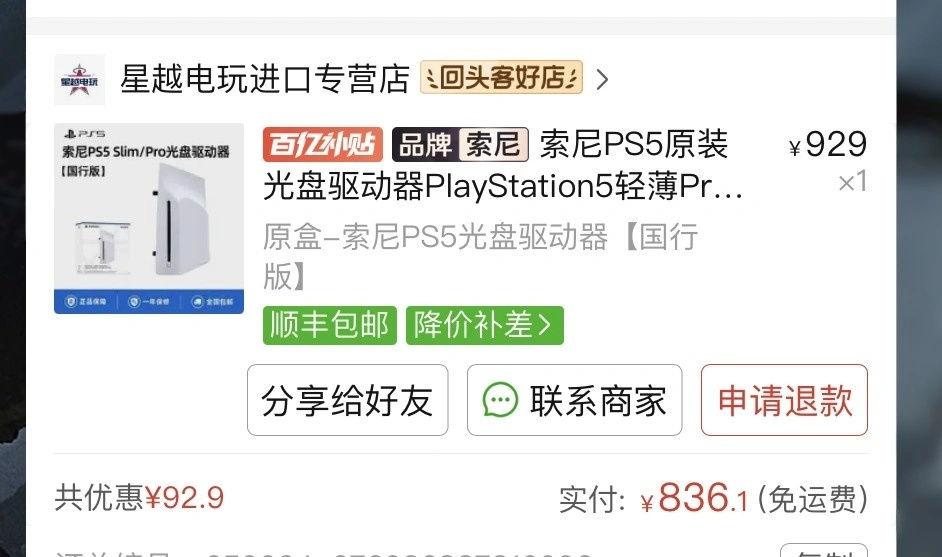 ps5光驅好價836 845,跟不溢價光驅差距越來越小了,買還是再等等聽你們的,只分享店鋪