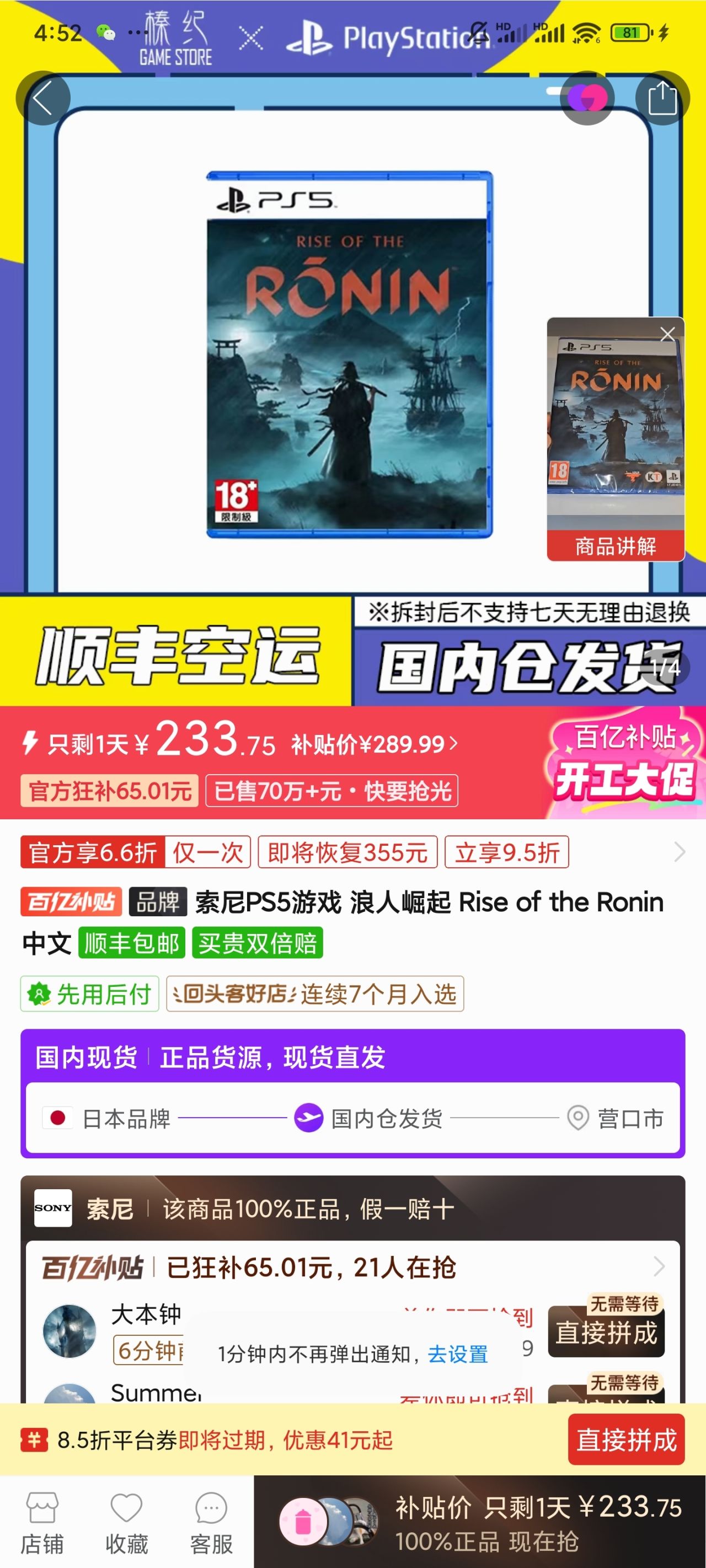 浪人崛起我這邊價格233,貌似有223的,來圖更新