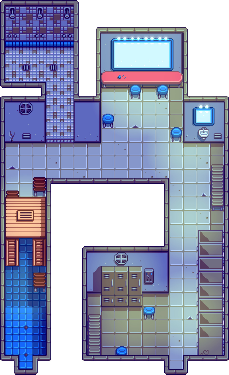 🚪入口处,两间更衣室静静地守候着,一男一女,仿佛在为每一位访客提供着贴心的服务。有趣的是,尽管有性别之分,但勇敢的探险者们还是可以尝试进入与自己性别相反的更衣室哦!只不过,这需要你在进入泳池区后,从另一边的出口处无视警告,快速连续多次尝试才行。