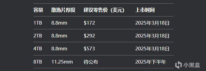1TB~4TB版本:集成8.8mm厚度散熱片,通過石墨烯導熱層與均熱板設計,宣稱功耗效率較前代提升49%。