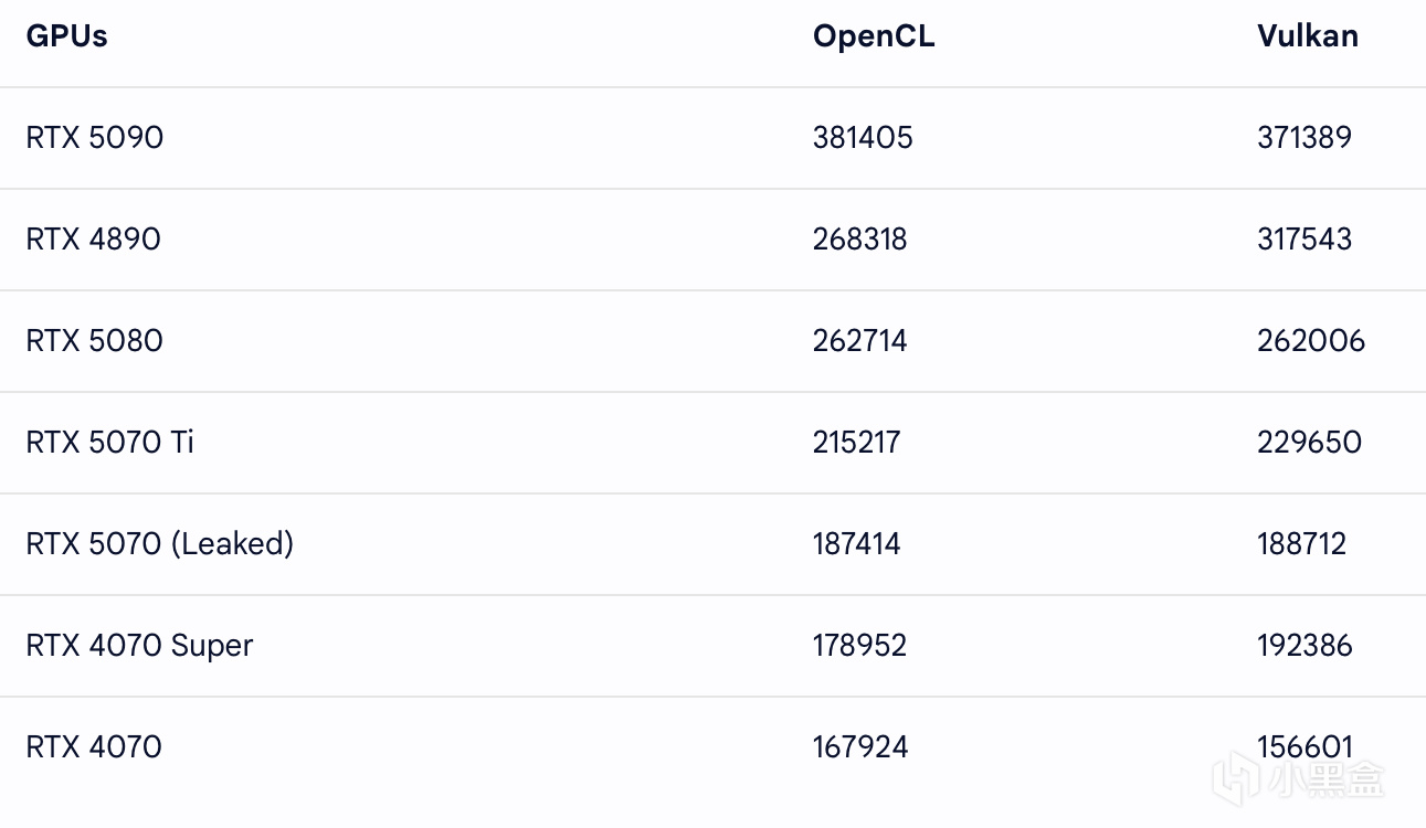 RTX 5070 在Geekbench 6 OpenCL 中的得分爲 187,414,在 Vulkan 中的得分爲 188,712
