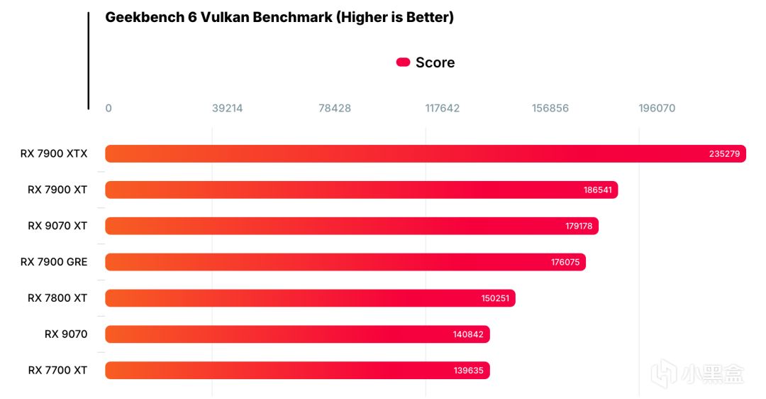 Radeon RX 9070 XT 在 Geekbench 6 的 Vulkan 測試中獲得了 177,395 分,在 OpenCL 中獲得了 179,178 分,與其前代產品 Radeon RX 7900 GRE 相當