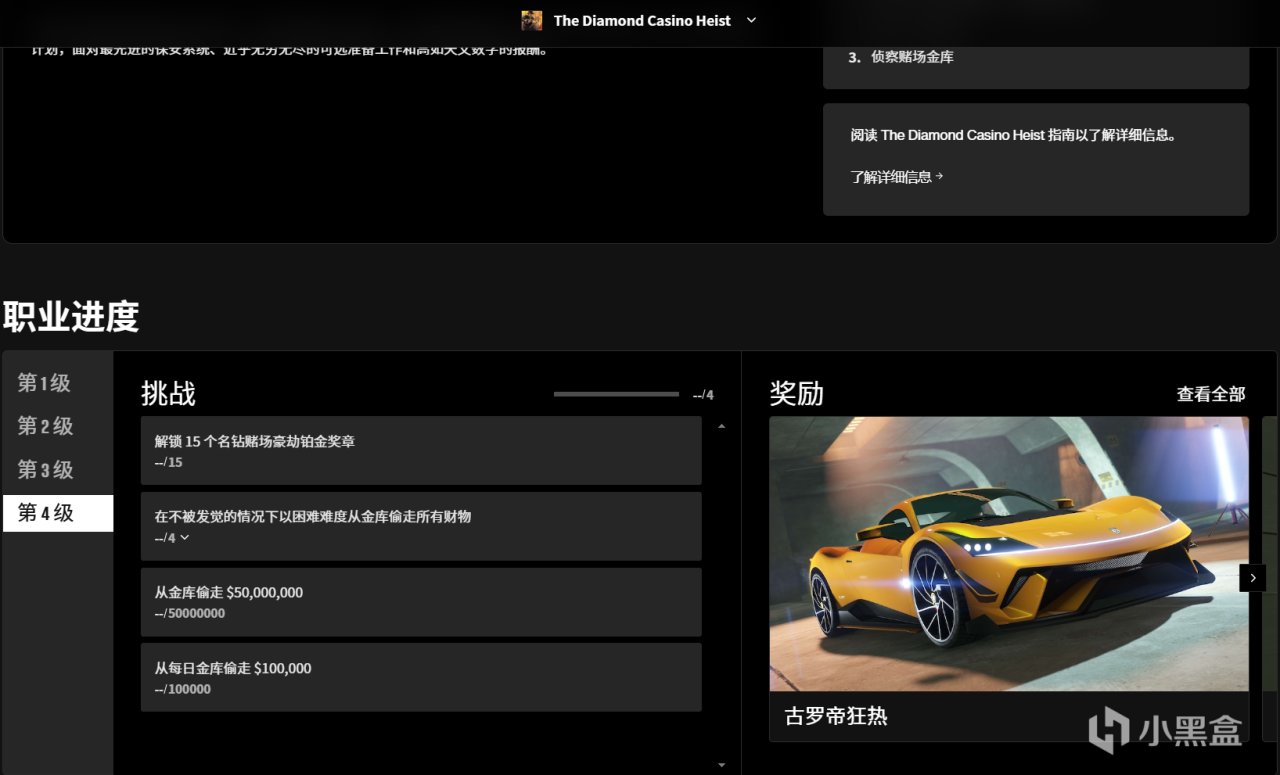 例:《名鑽賭場豪劫》DLC所屬職業進度