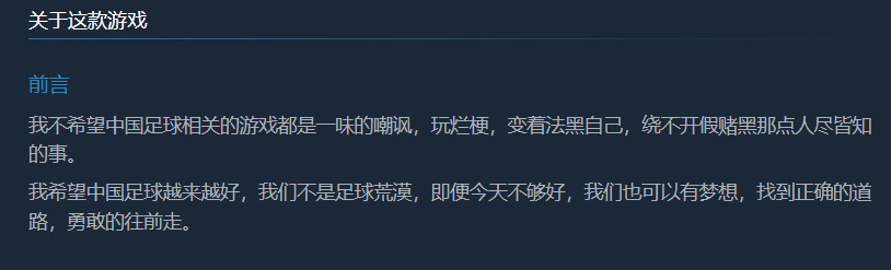 Steam的游戏页面里,悟空一开始给《国足模拟器》介绍写了一段还挺“单纯”的前言: