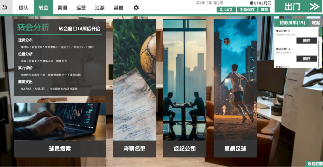 但在这款“国足模拟器”里,玩家要考虑的内容还包括了青训规划、设施建设、足协提案、上下级关系,以及“江湖”: