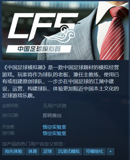 悟空的游戏叫作《中国足球模拟器》(以下简称“国足模拟器”),从Steam的游戏介绍上,你也能看出这款游戏的奇异之处: