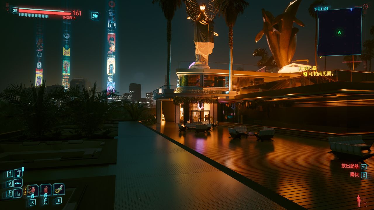 然而,在正式發售的版本中,此區域並未如概念圖所展現出來的那樣屹立在夜之城當中。很顯然,CDPR放棄了“威斯布魯克”區域,所謂的“富人區”成了廢案。