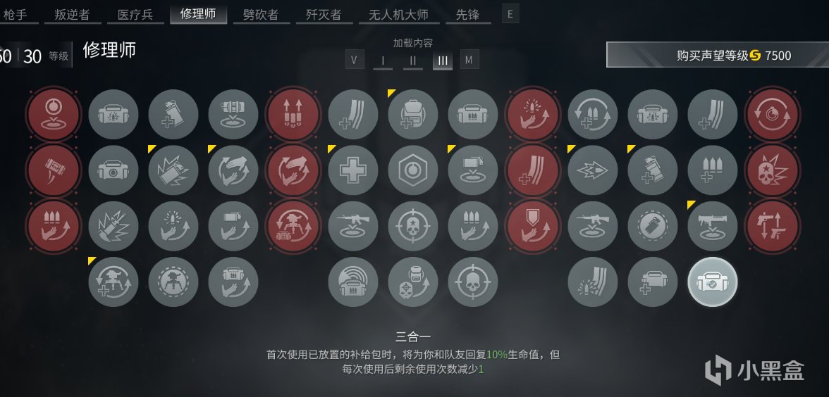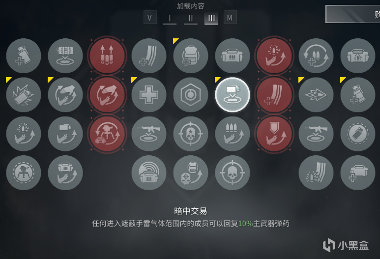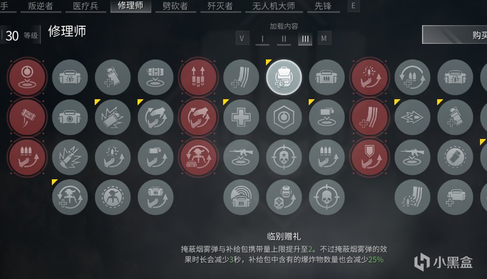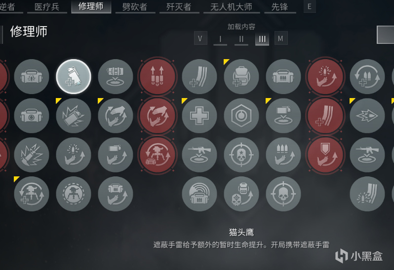 煙修核心補給技能,救援時回覆裝備。單煙配置下可彌補裝備獲取途徑不足的問題,組隊局需注意與醫生職能重疊。
