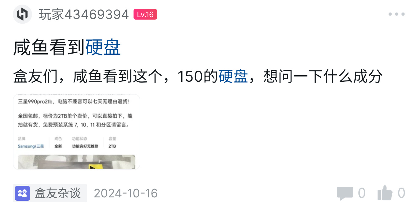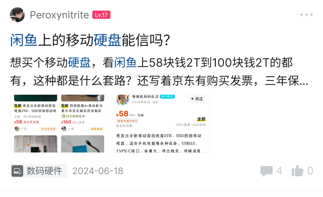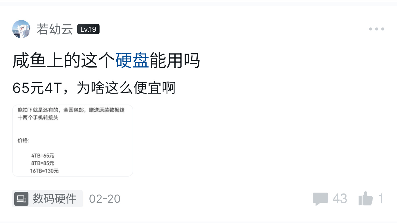 亦或者一些受害者只是把珍貴的回憶存進去硬盤,但這種不知道哪來的主控和顆粒穩定性不明,哪天數據全丟了找販子也找不到了,咱能做的也就科普一下了,能勸一個是一個
