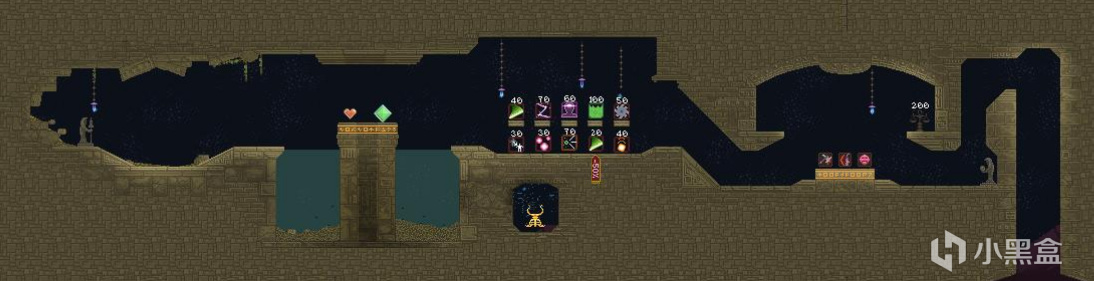 该区域中央地带可能会生成法杖、生命值上限提升、宝箱。