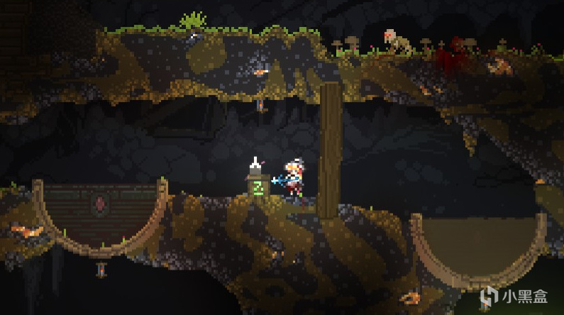 真菌区域固定刷新2-3只菌类敌人,且底部很可能会生成宝箱或者法杖或者生命值上限提升。