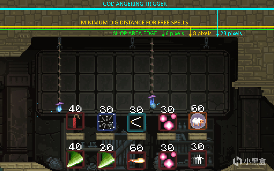 noita们会用【浮力之环】法术或者【召唤触手】法术把法术往上顶,但目前版本需要挖开一点点圣山的天花板,才能让顶上去的法术触发离开圣山的判定,从而白嫖,当然noita们也可以利用【翡翠石板】把法术往上顶,但过程很折磨。