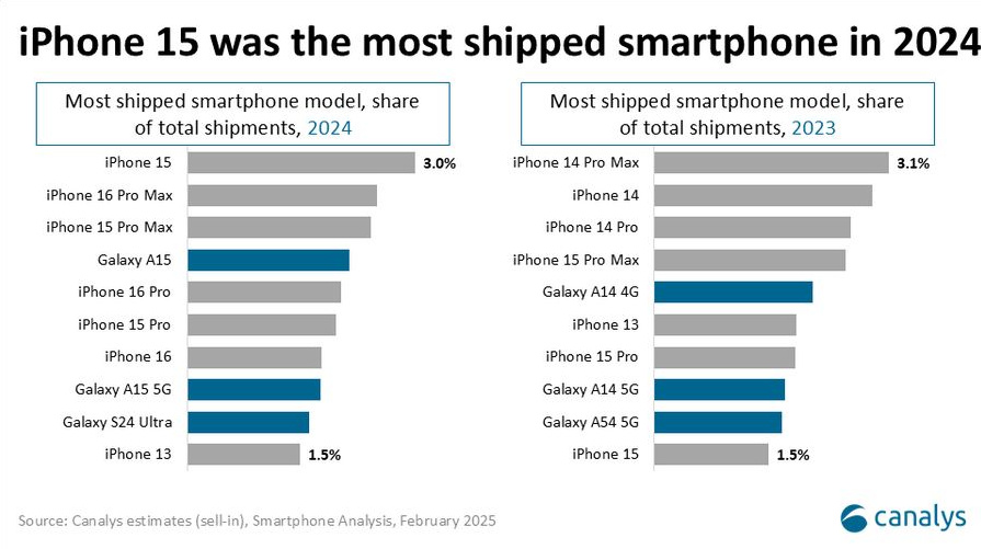 不過大家也別高興太早,我看了下去年出貨量最高的手機,好傢伙,幾乎全被各種型號的 iPhone 和三星給包圓了,只能說在高端市場這塊,國產廠商和蘋果、三星相比,確實還有好長一段路得走。