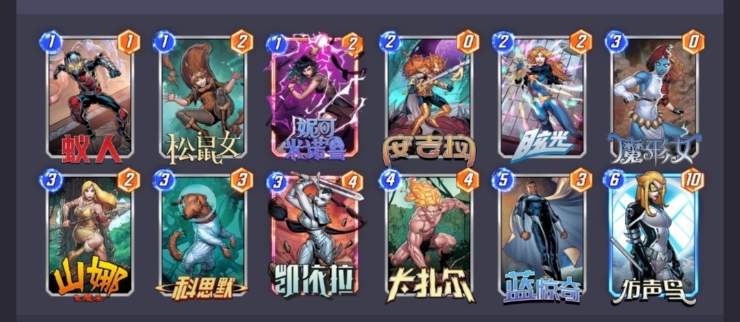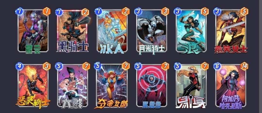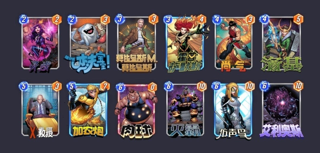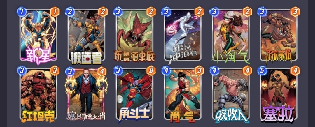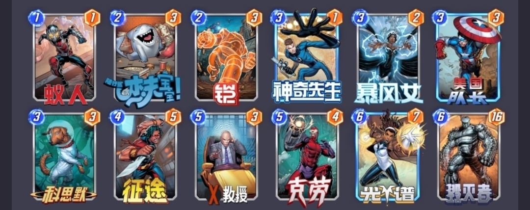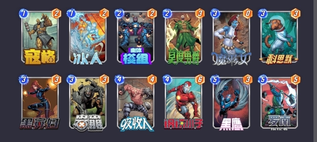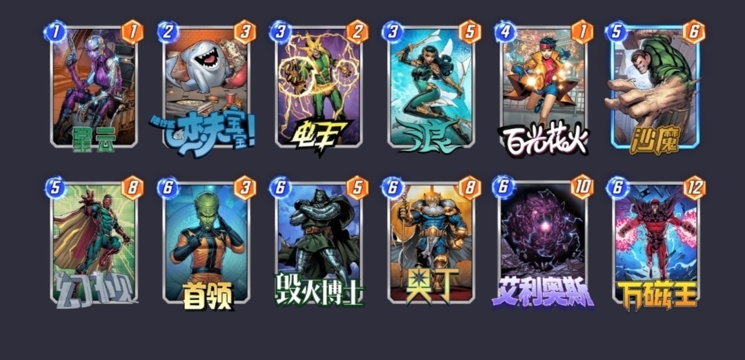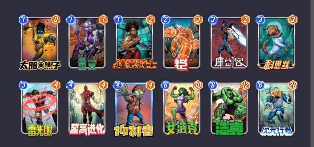 萌新之友,可以将魔剑客,抑制者,次元行者和女浩克替换为电沙,x教授和黑云(小鲨鱼)。