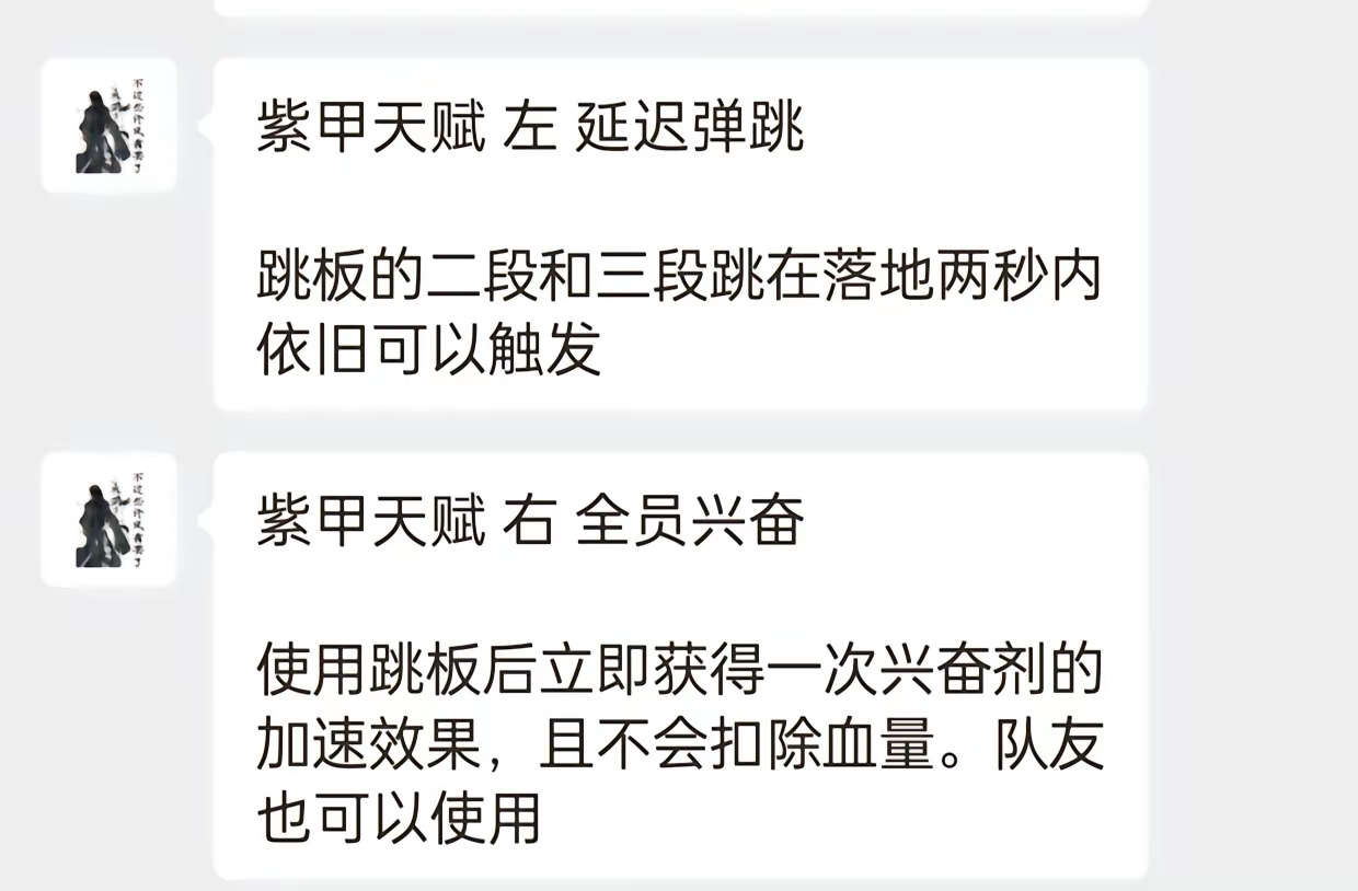 使用跳板後立即獲得一次興奮劑的加速效果,且不會扣除血量。隊友也可以使用