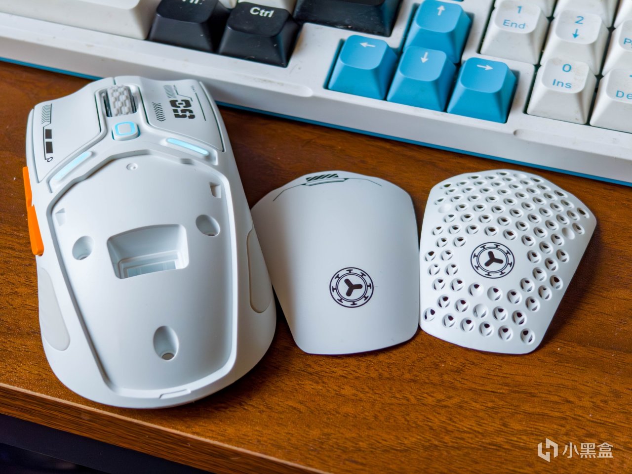 包裝裏額外贈送蜂窩打孔後蓋,減輕重量,通風防手汗。2.4G接收器也在這裏,有收納地方防丟。