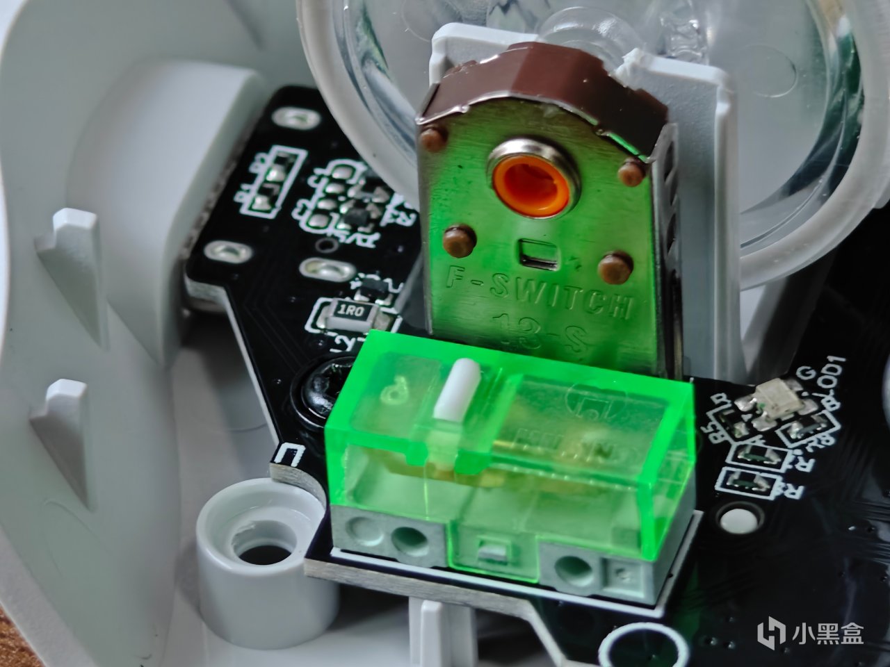 編碼器用的F-Switch 13-S,左右微動用的華諾綠殼白點,1億次點擊壽命。雖然手感我認爲不如藍殼粉點,但是依然比2000W次的那些垃圾微動強太多了。