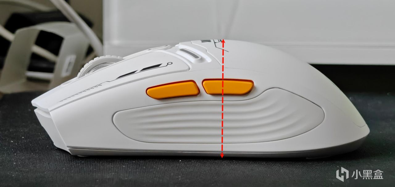 左右按鍵蓋確實好看,但是爲了給中間的DPI按鍵和滾輪的框架讓路,就變得很窄。手指勉強可以放下,但是很侷促。
