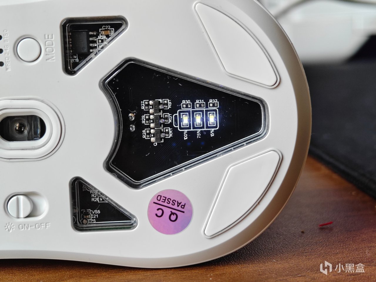 底下是三模的開關和DPI按鍵,底下這個設計也是用心了,做了透明視窗,把PCB板都漏出來看。