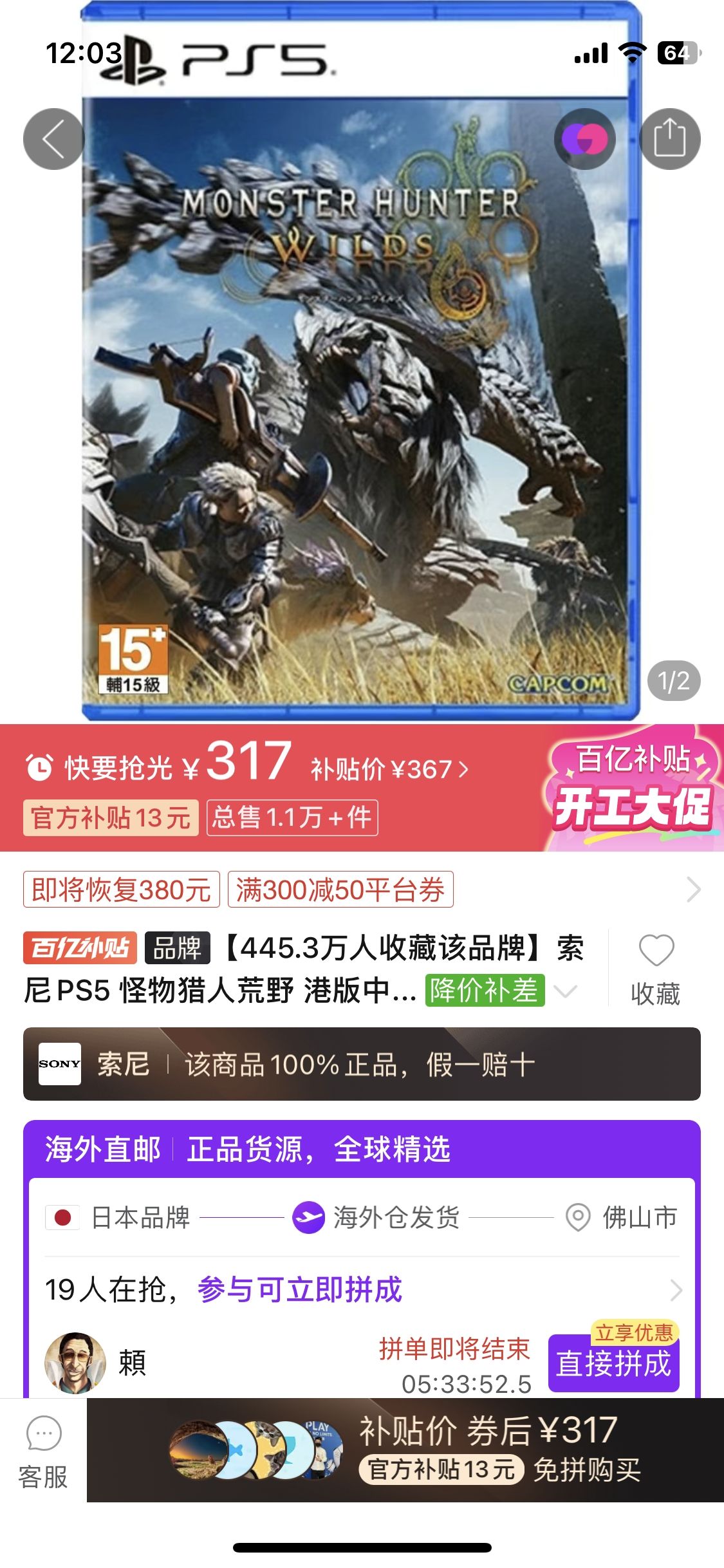 法環的話,還能降,短期能多次下調,從369一路俯衝350 342 339到現在320,個人xjb猜應該能降到2077往日之影那個258或者270的價格,或者cod地平線這種266的價格,pdd的價格是有檔位的,一般不會有太零散價格。
