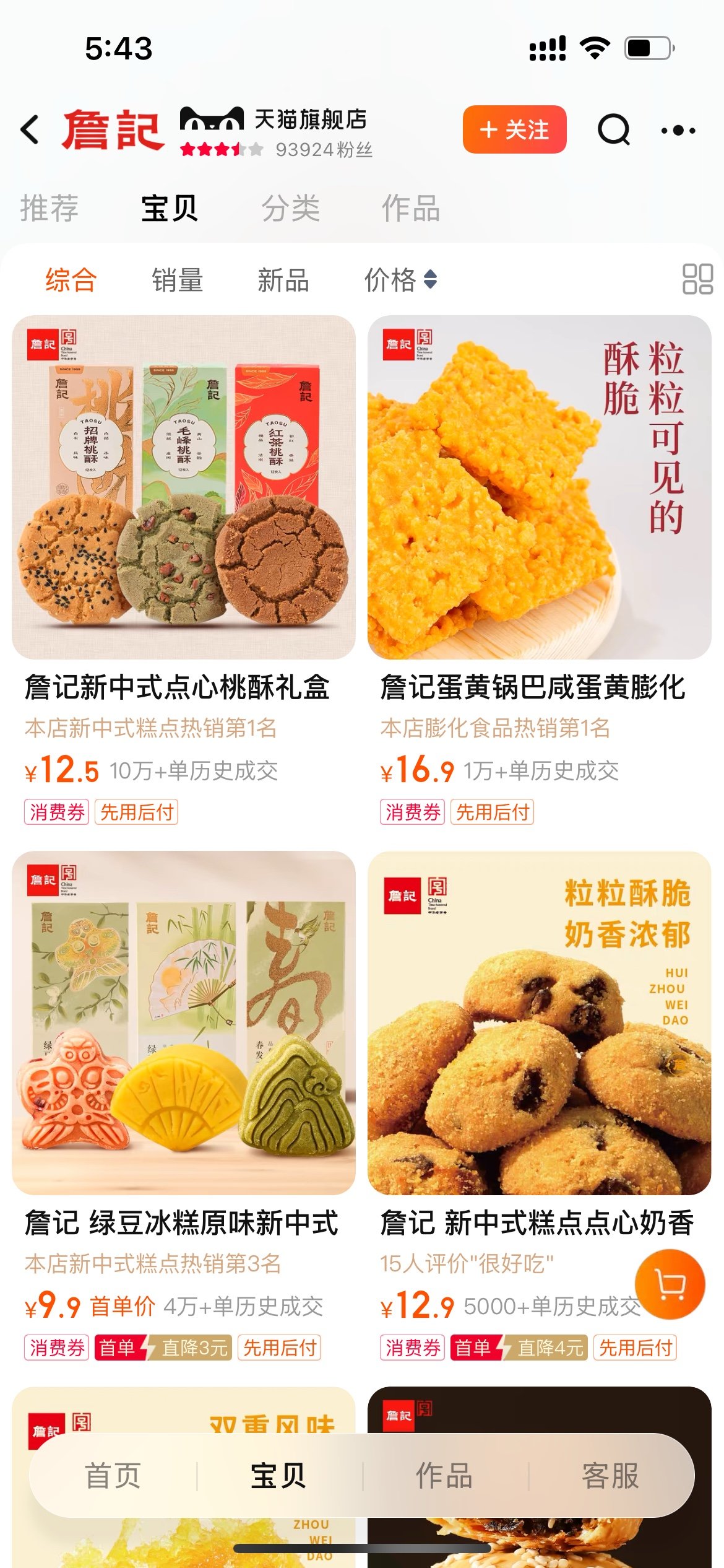 才發現詹記有淘寶旗艦店,蛋黃鍋巴和桃酥都挺好喫的,還有他們家的冰淇淋牛角包和栗子糕都很不錯,我喫不了太甜的,每次都配苦苦的茶一起喫,喜歡甜食的可以試一試!推薦指數四顆星⭐⭐⭐⭐