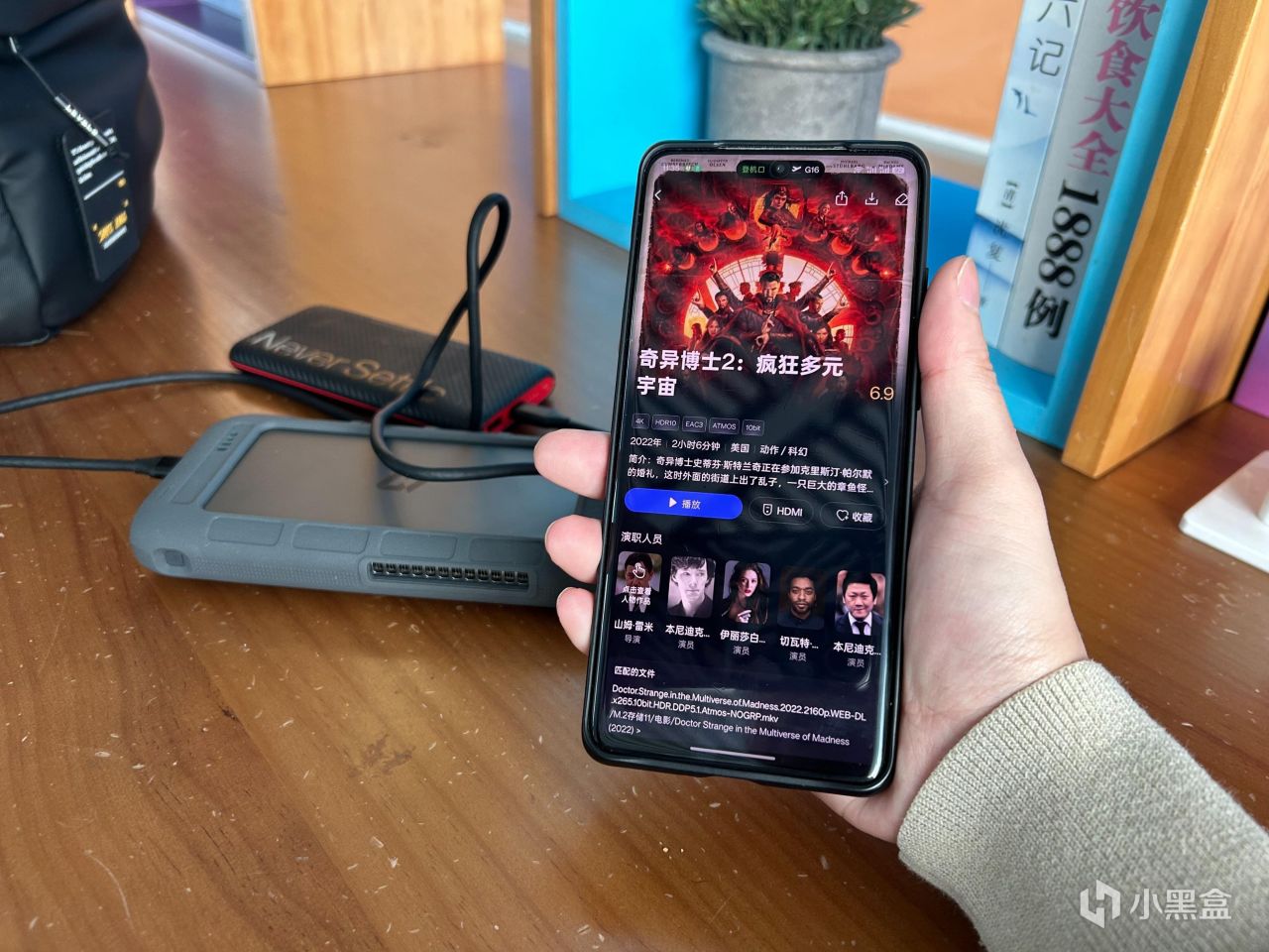 極空間T2S其實還是一臺便攜mini藍光硬盤播放機,入住酒店後,它可以通過HDMI、DP、Type-C的方式直連酒店電視,然後就可以流暢播放極影視中存儲的4K高清影片,而且由於是HDMI2.1直連方式,4K120Hz輕鬆拉滿,最高支持8K,可以全程播放無卡頓無廣告,十分愜意。
