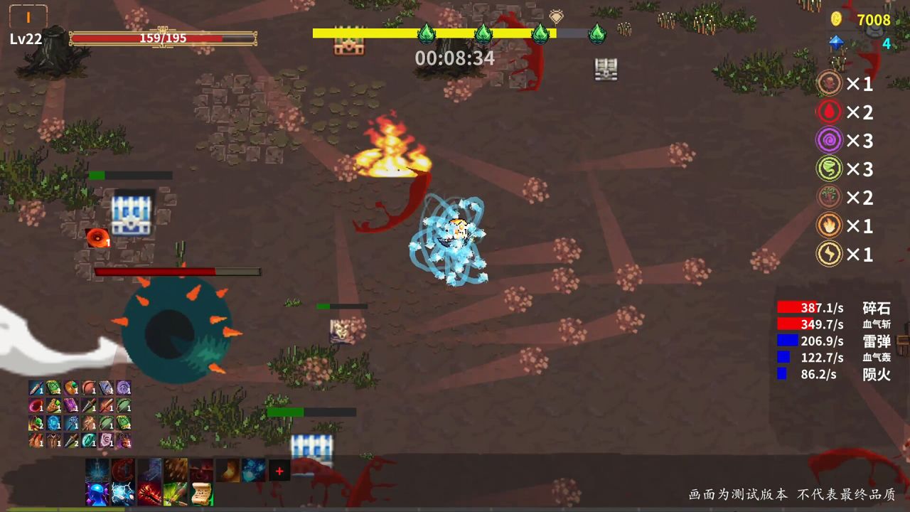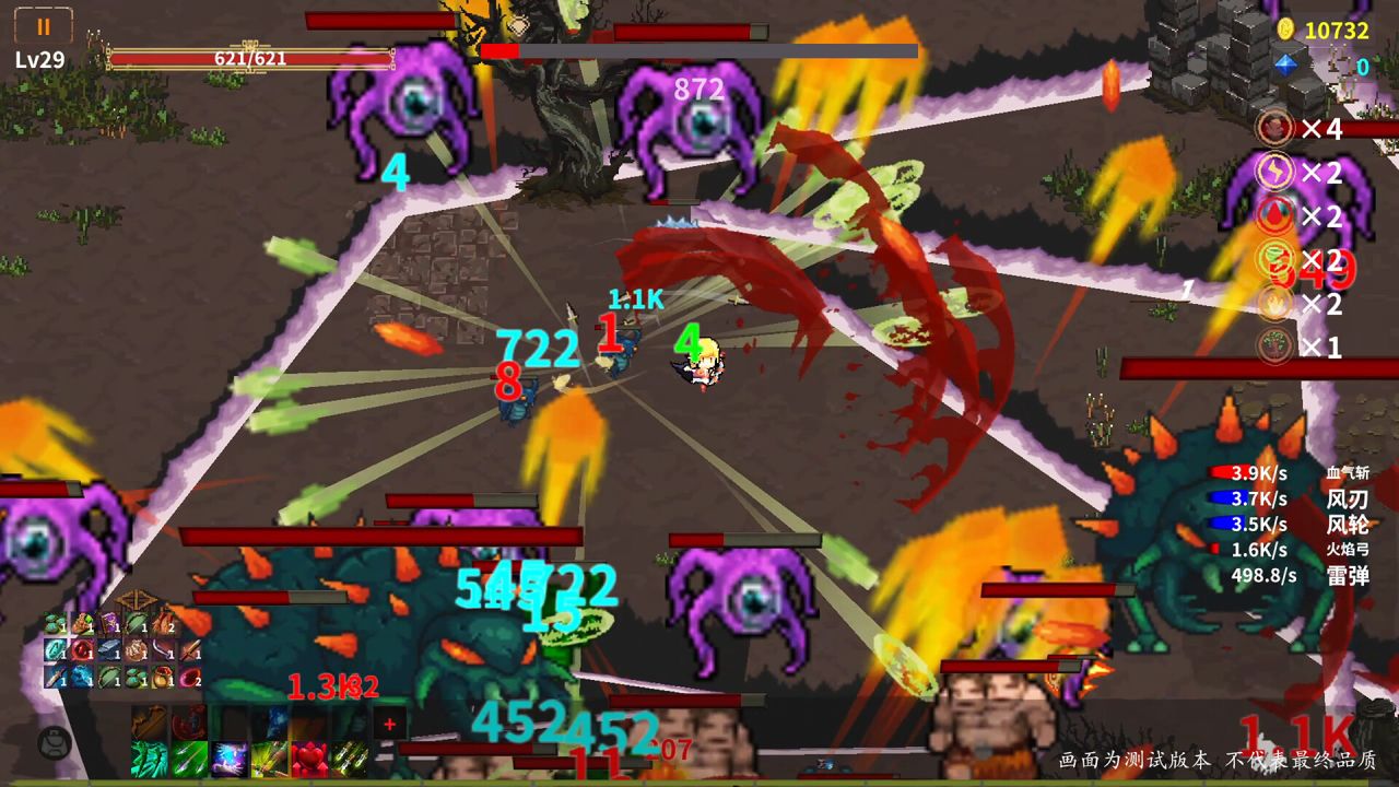《转生魔塔》是一个集合了roguelike元素的横板割草游戏。