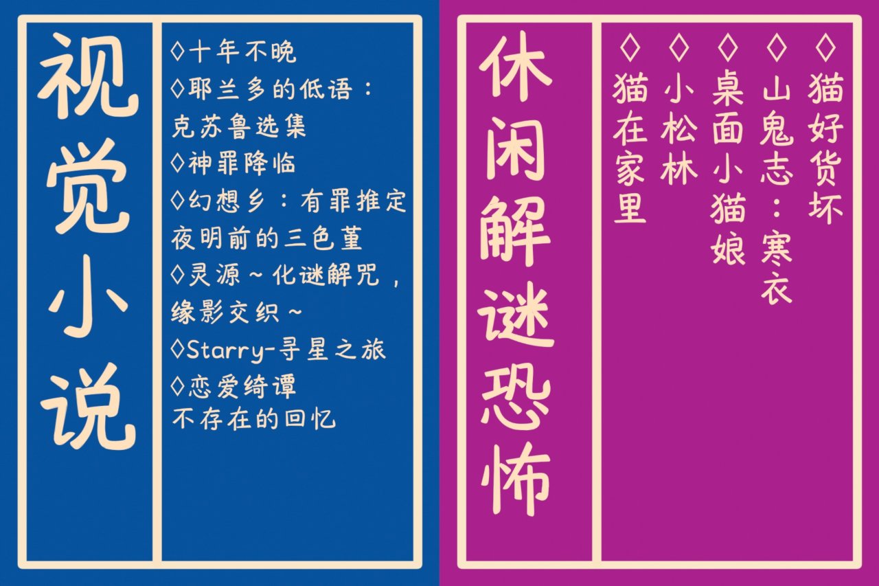 角色扮演、视觉小说、休闲解谜恐怖,请跳转至下集👇