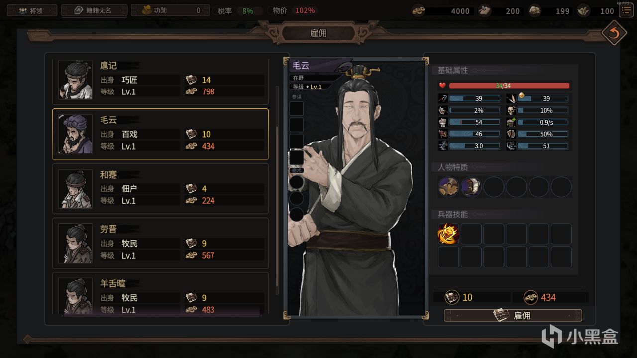 例如在招募杂鱼时,玩家是看不到杂鱼的具体属性,而是仅能看到一份自我介绍式的简历。只有招募到手了,才能看到具体的天赋。
