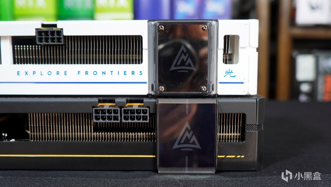 供電接口有所差異,藍戟B570 Photon 10GB供電接口採用了傳統單一8PIN設計,而藍戟A770 Photon 16G採用了8PIN+8PIN供電接口設計。兩款顯卡都有藍戟logo的LED顯示屏設計,區別在於藍戟B570 Photon 10GB在設計方面有所變動,不再是內嵌集成式設計,看起來有四顆螺絲固定的顯示屏可以自行拆解,同時在顯示屏右側加入了文字“光”。