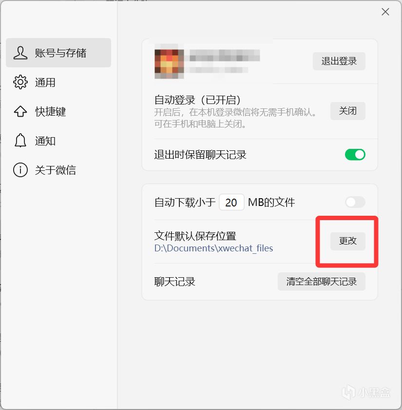 打開微信左下角三槓-設置,更改文件默認保存位置到其他盤。