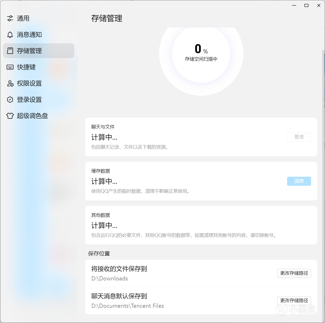 打開QQ,點擊左下角的三槓,點擊設置-存儲管理,可以自行刪除保存數據、聊天文件,並文件下載位置、聊天記錄保存位置之類的全改到其他盤。