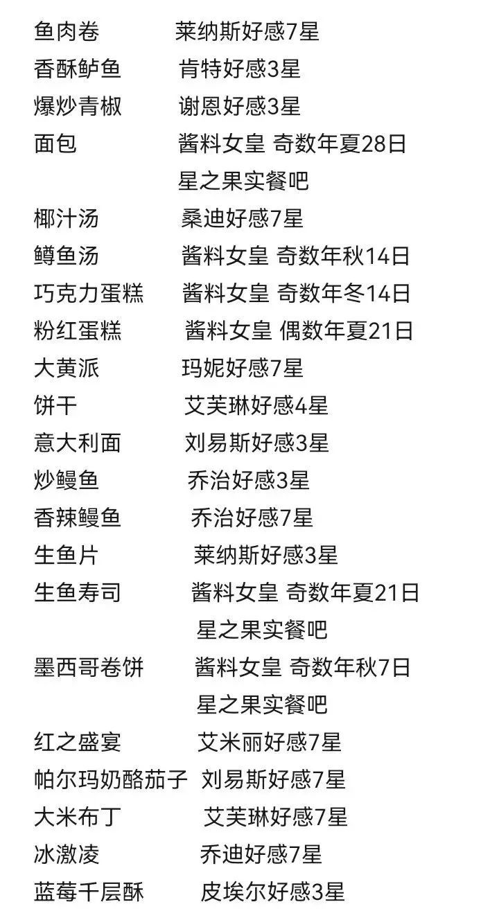 3.各個NPC的好感度達到一定❤數,會給你發送帶有菜品配方的郵件。