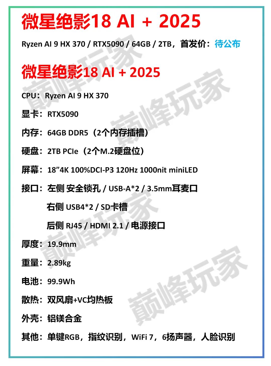 模具是最新的藍天X580,有4個M.2硬盤位與4個內存插槽,2個雷電5,2個2.5G RJ45,是目前擴展性最強的遊戲本之一。其他諸如單鍵RGB,氛圍燈,多揚聲器組合等,都是標配。就看價格如何了,畢竟5090是真貴,5080低配應該能實現2萬以內搞定。