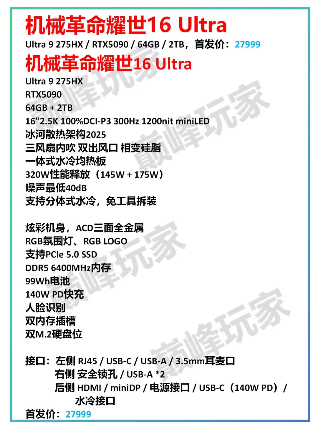 耀世16Ultra,全新模具,官方水冷,16”2K 300Hz miniLED屏幕,各項旗艦機應該有的配置差不多都給到了,但畢竟就16英寸,內部空間有限,做不到像將星X18 Max那樣豪橫的內存與硬盤擴展性,