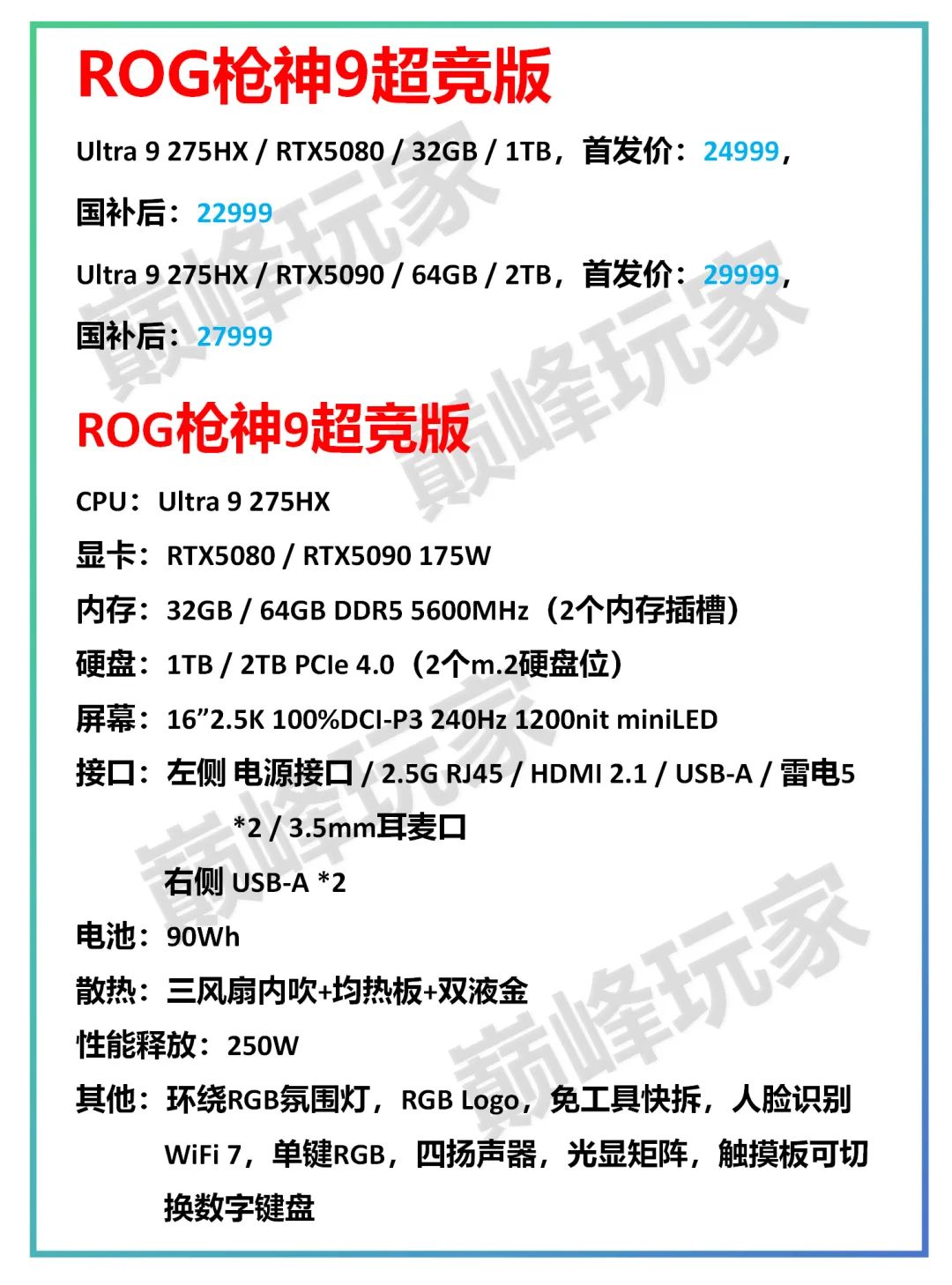 ROG已經上架了RTX5080 / RTX5090的槍神9 Plus 、槍神9超競版與9Plus超競版,這些機型都用上了全新模具,思路類似於槍神8 / 7的時期,一套模具,通過合理刀法+ 拉皮,整出了16與18英寸的多臺不同機型,從高到旗艦,從大到更大都能兜得住。
