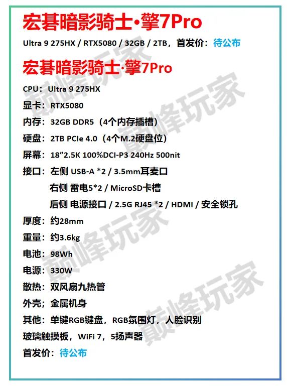 宏碁已經上架了2款5080顯卡遊戲本,價格尚未公佈,詳細配置我整理好了,可以參考。