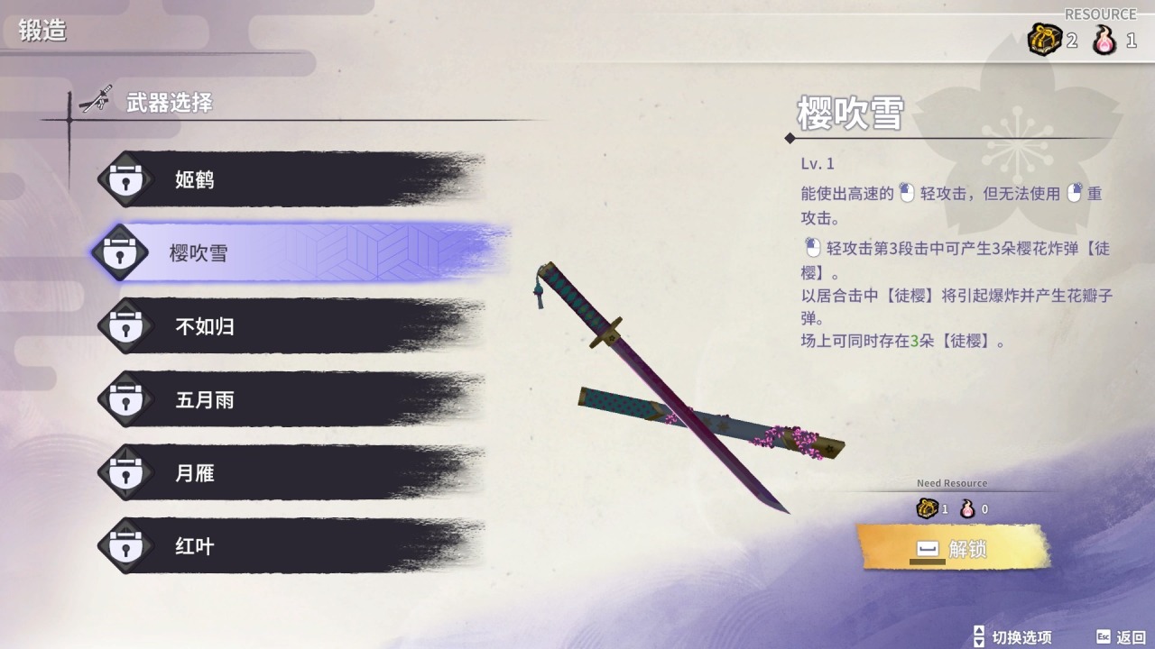 前文提及的武器,同樣需要在局外通過材料解鎖。不過難度相對較低,材料獲取也很容易。