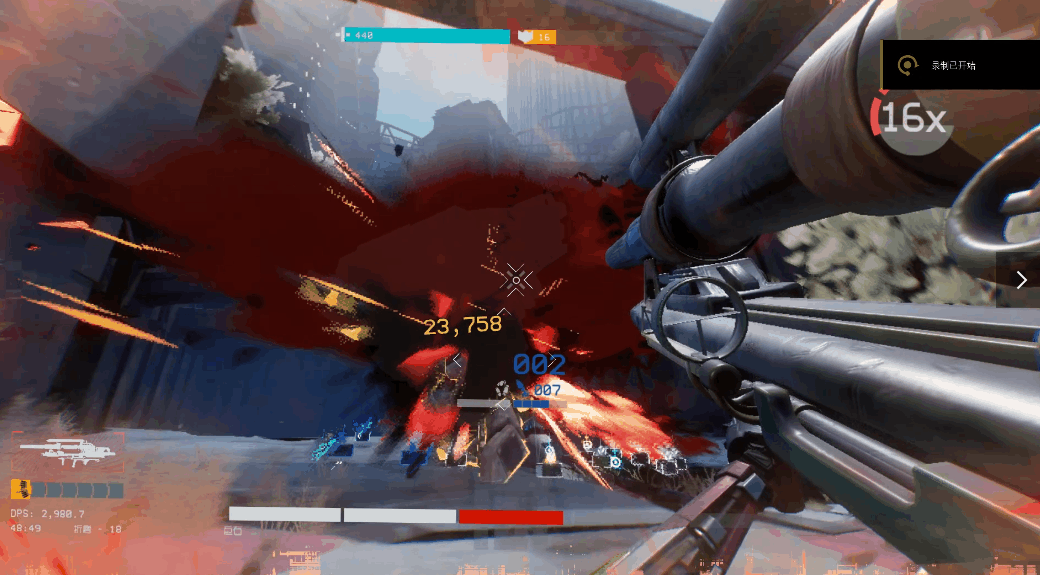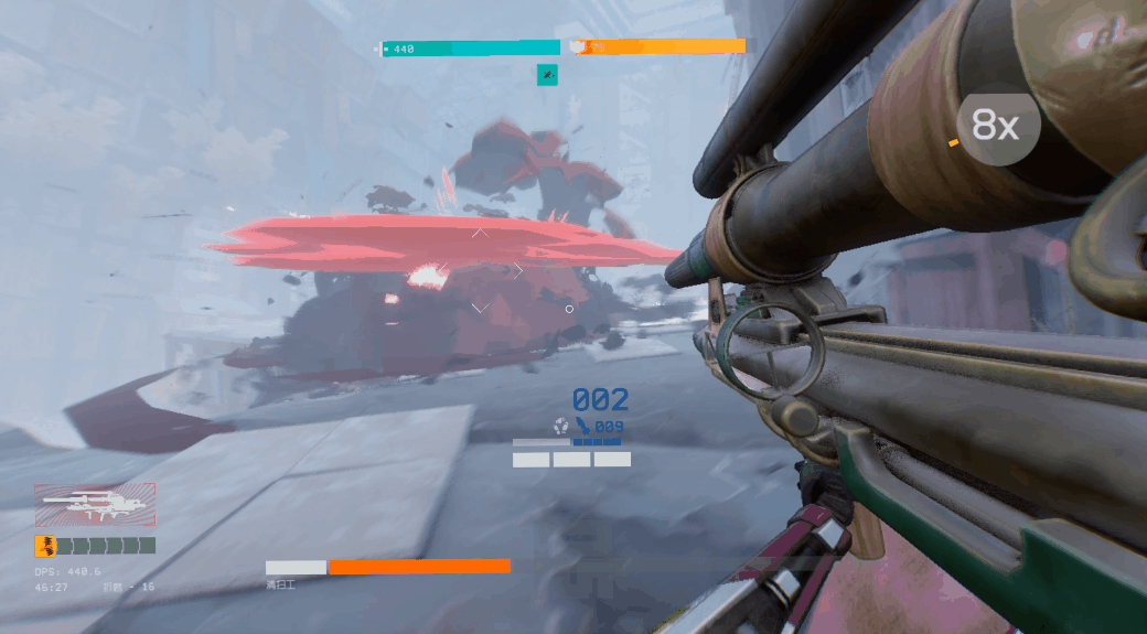 除此之外,製作組也通過限制彈藥數量的方式,提升了玩家和BOSS的交互性。在恰到好處的時機擊中敵人(遠程、近戰皆可,不過我更偏向於前者),便能讓他們陷入較長時間的僵直。這種方式可以補充彈藥、護盾等資源。