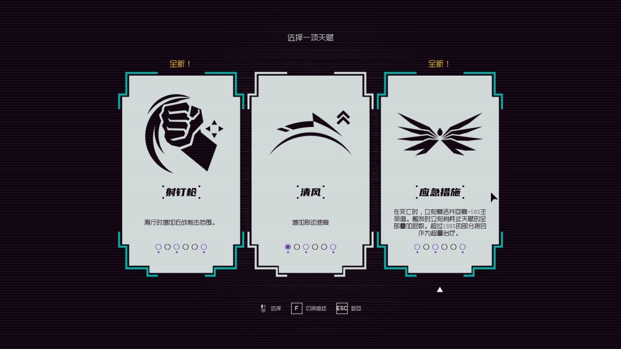 如果說本作的戰鬥方式類似Doom,那麼資源內循環機制,可以理解爲簡化版的槍火重生。每個天賦可以重複選擇,增強效果,達到3/6次後,會有巨幅提升。