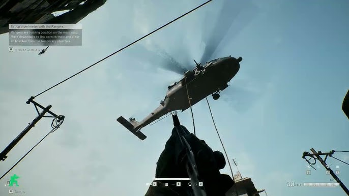 《黑鹰坠落》战役共分为 7 个章节,完整复刻了电影中从突袭抓捕到坠机救援的全过程。玩家将扮演美军特种部队成员,亲历情报失误、直升机坠毁、巷战突围等经典桥段。剧情中既有对历史事件的忠实呈现(如摩加迪沙的街道布局、民兵伏击细节),也加入了影视化的叙事手法,让玩家仿佛置身于一部战争大片中。