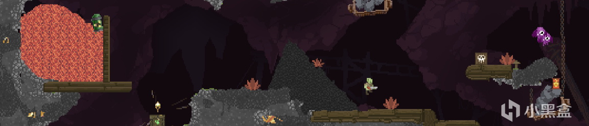 如果mina不小心被火山岩掩埋,等待她/他的只有狂按WASDF或者等死。如果mina被附有毒液的岩石掩埋或在上面站立,她/他就能體會到什麼是血條消失術。如果不小心被綠色毒液蒸汽撲面,那麼mina會持續受傷,最怕它來補刀。