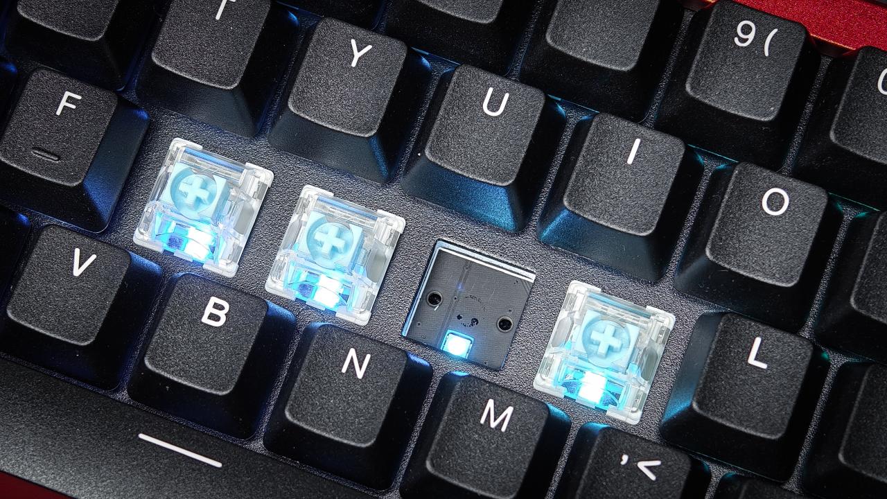 拿開鍵帽能看到下方的天青pro磁軸,跟金屬定位板,