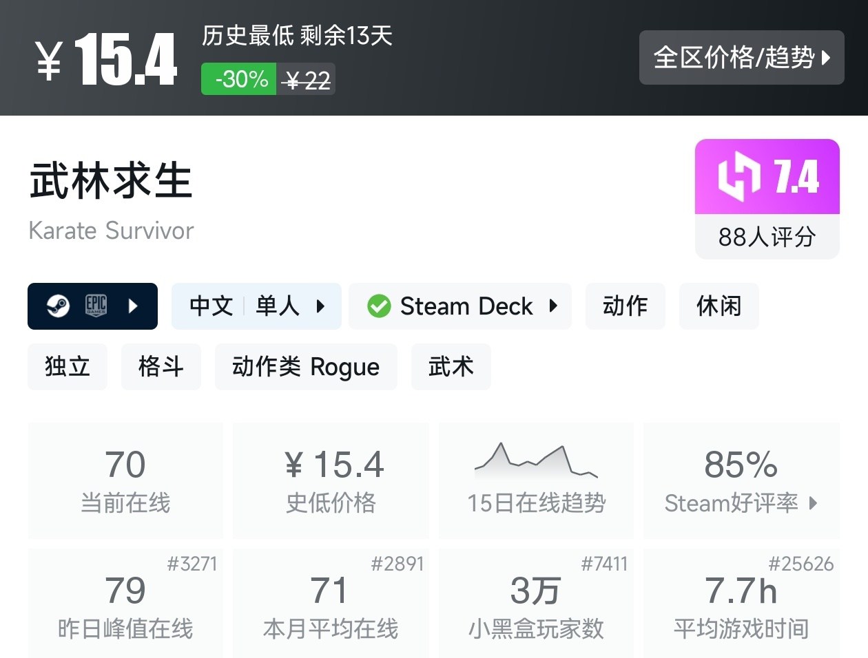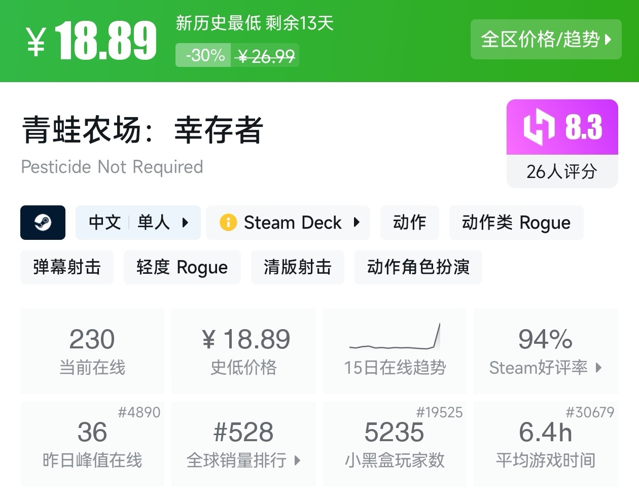 游戏为新史低,推荐配合DLC一起玩。
