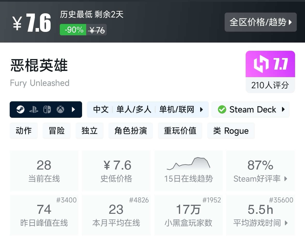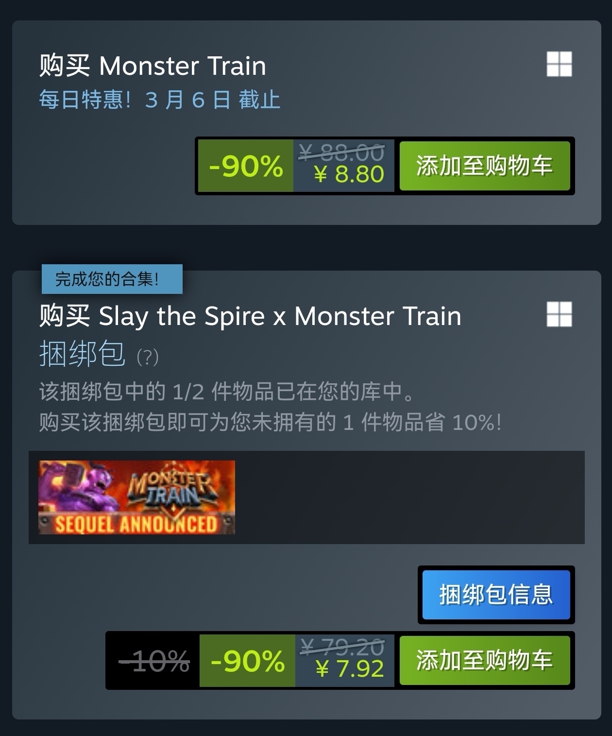 如果你有《杀戮尖塔》,更可以用便宜的价格拿下,因为游戏有捆绑包而且支持补齐。