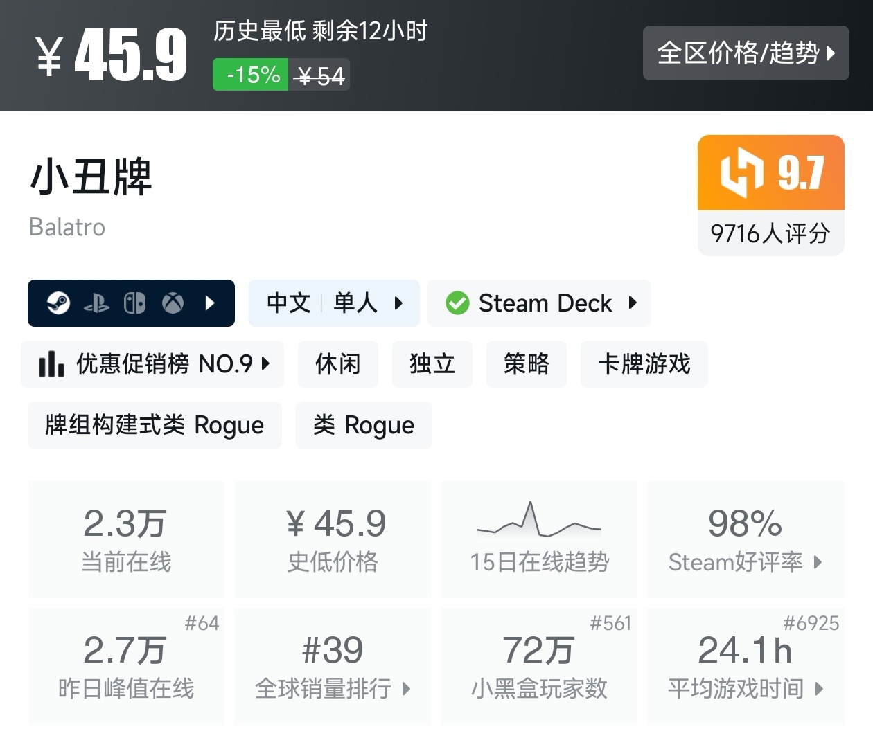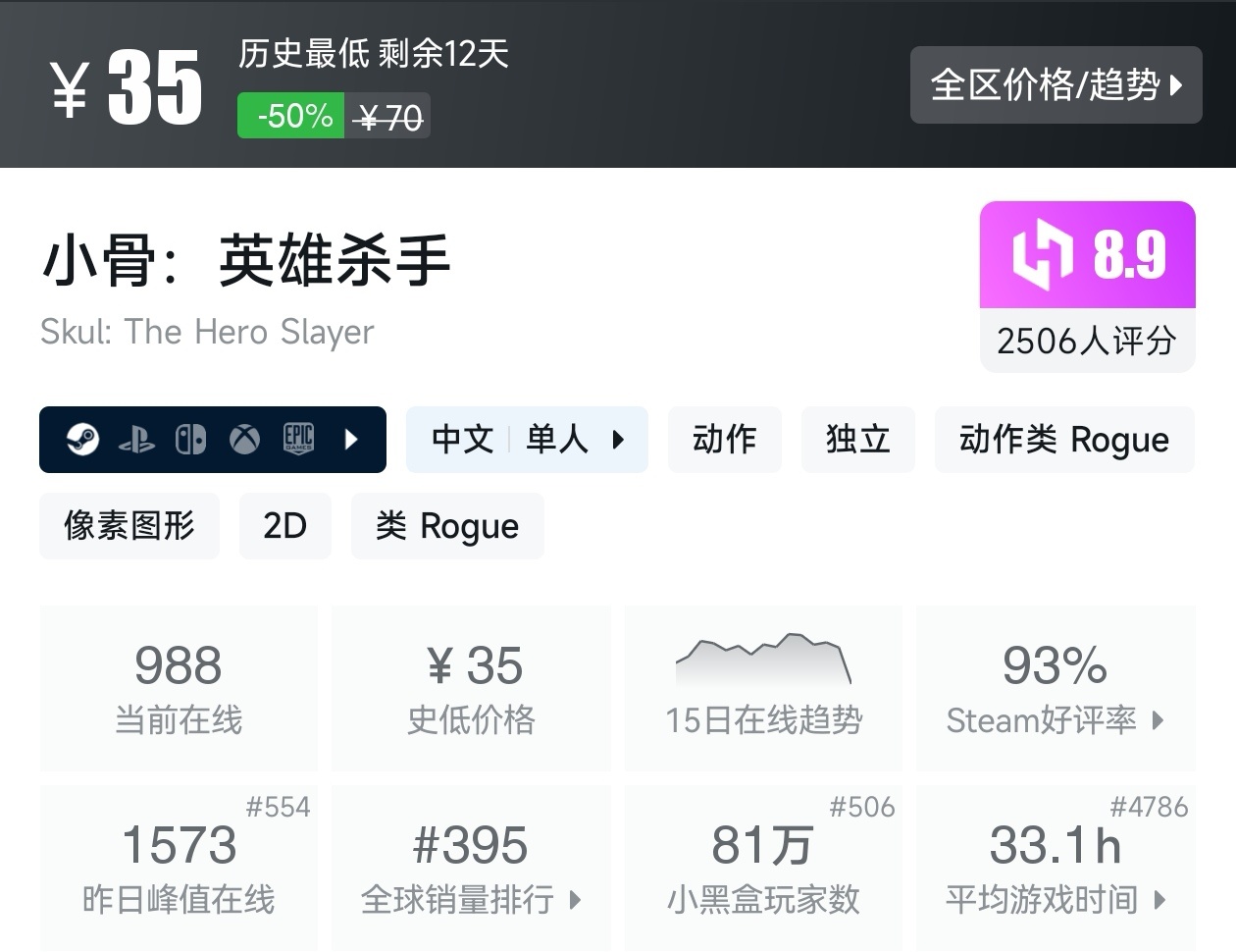 如果你有《杀戮尖塔》,更可以用便宜的价格拿下,因为游戏有捆绑包而且支持补齐,或者你盒币多,可以选择在黑盒商城购买,因为游戏有个专属优惠券,券后的价格与这个补齐价格一样的。