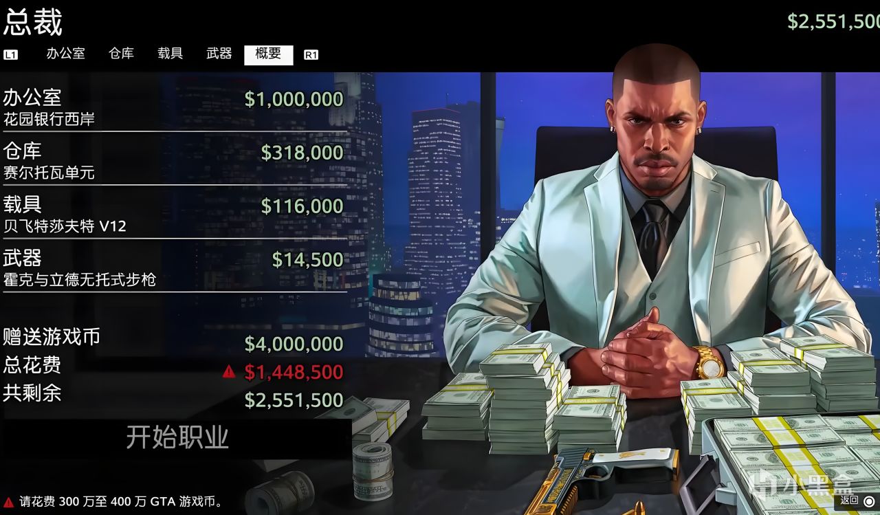 比如你选择总裁,那么接下来的消费环节只可购买《办公室富贵险中求》DLC所属的资产、载具、武器,不能买别的